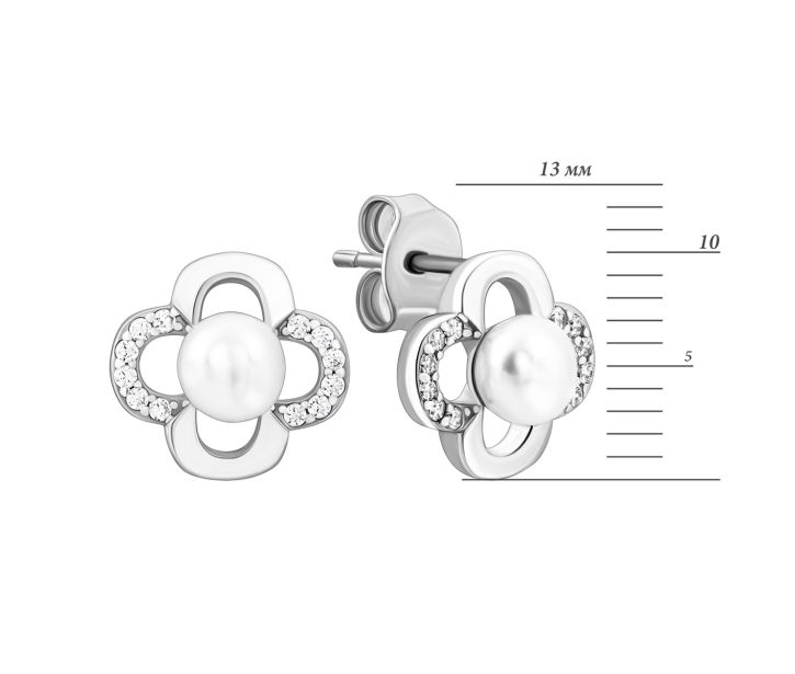 Серебряные пуссеты с жемчугом и фианитами (SE00660)