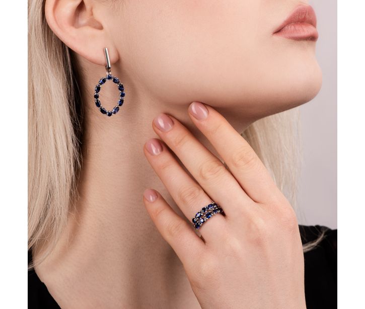 Серебряные серьги с гидротермальным сапфиром (2378/1р-HSPH)