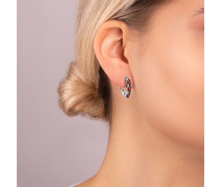 Серебряные серьги с гранатом и фианитами (2981/9р-GARN)
