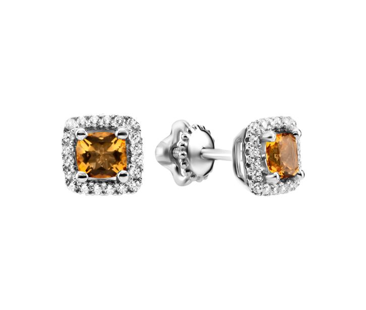 • Серебряные серьги-пусеты с цитрином и фианитами (2534/1р-CITR)