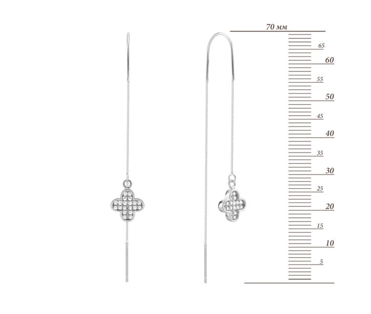 Сережки-протяжки (продевки) зі срібла 925 проби з фіанітами